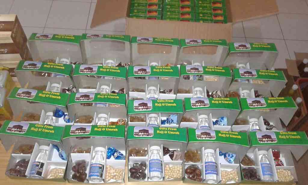 Sambut tamu tanpa repot packing. Paket eksklusif berisi Air Zam-zam, Kurma pilihan, Kismis, Kacang Arab, dan Cokelat Arab. Kemasan mewah, siap dibagikan